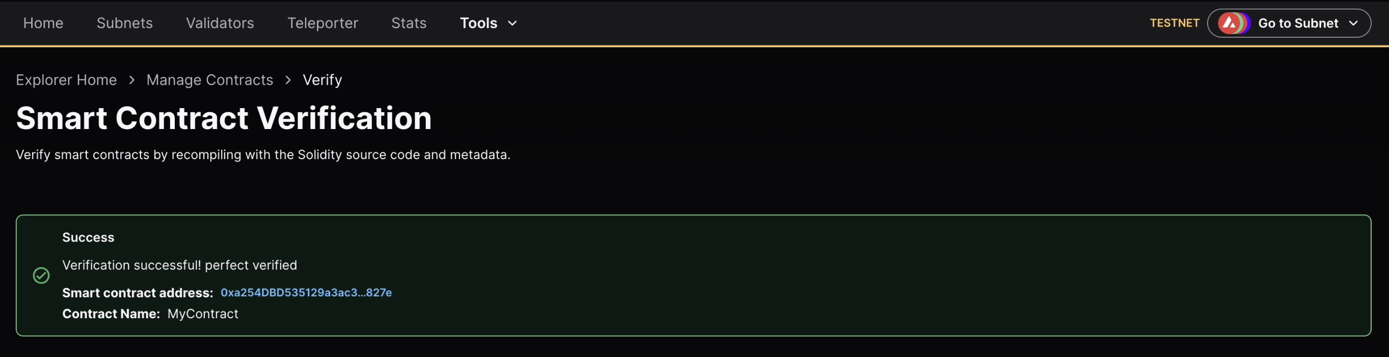 Learn how to verify a smart contract using the official Avalanche Explorer.